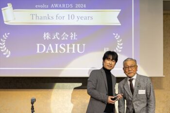 「evoltz AWARD 2024」に参加させていただきました。制振ダンパーevoltz誕生10周年の節目の年に、10年間の歩みを振り返りつつ、未来へのビジョンを共有するという催しでした。当日は様々な表彰があり、当社は10年以上にわたりevoltzを利用しているという事で、『Thanks for 10 years』をいただきました。冒頭、会長様と社長様のご挨拶があり、開発秘話や苦労をされたエピソードで目頭が熱くなることも…