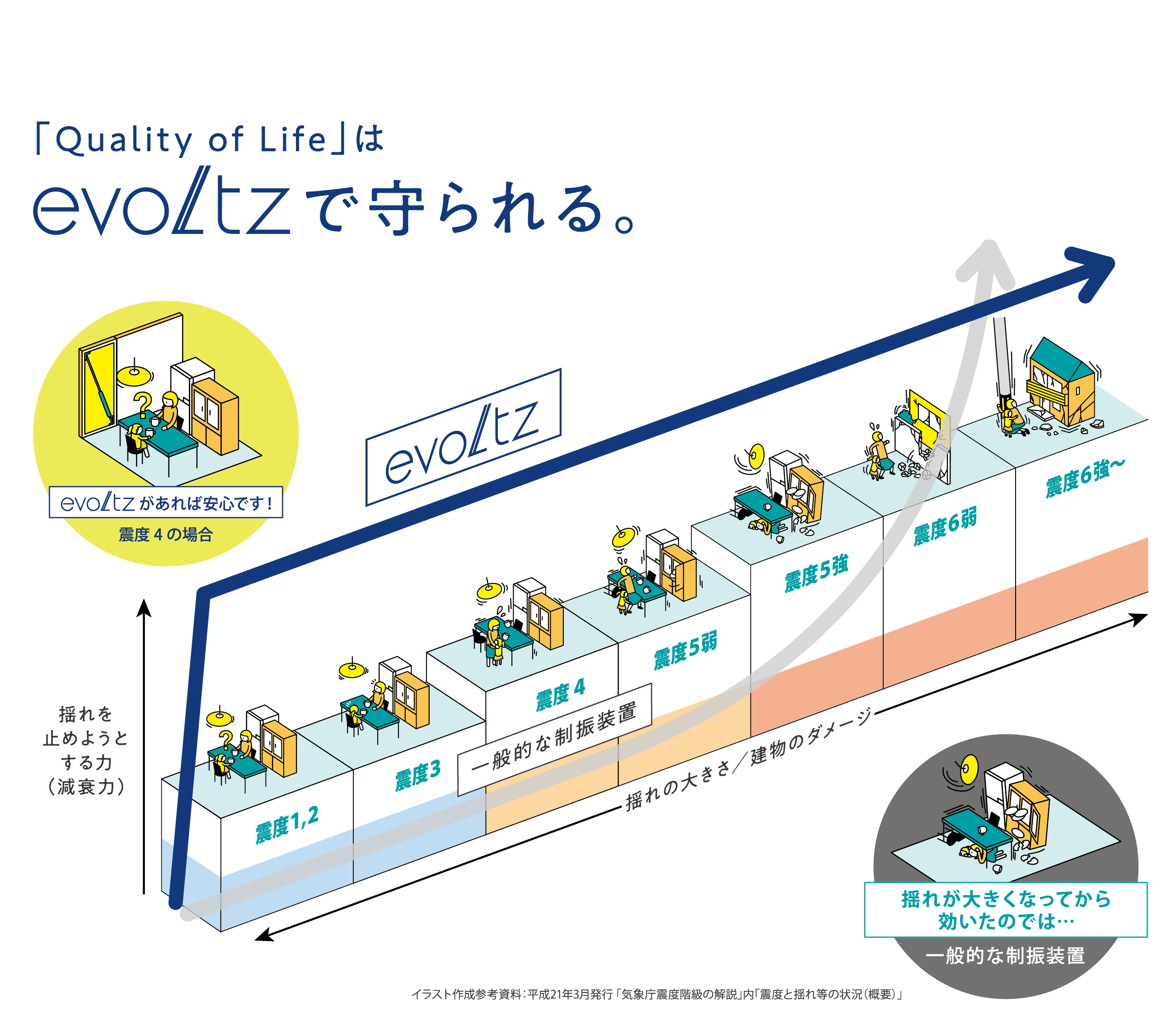 evoltzは、地震による揺れを軽減させ、住宅や家族や財産を守るための制振ダンパーです。