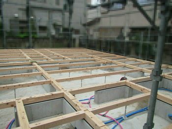 基礎の立上りから上に出ている金物がいくつか見えますが、これは基礎と土台を緊結するためのアンカーボルトです。