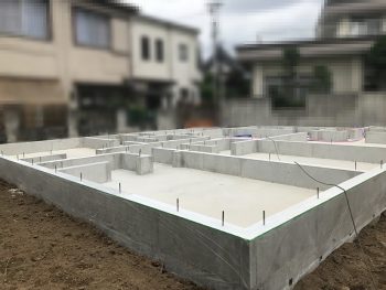 生コンを打設して型枠を解体し、基礎工事完了時の状況です。