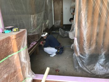 ご生活されている中で工事させていただいているので危険が無い様に仮床敷きまで初日の作業予定としていたので安心しました。