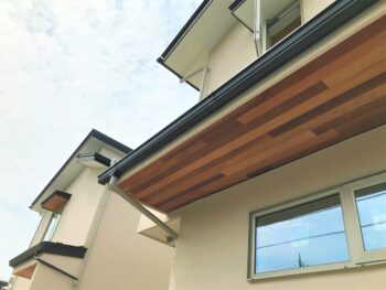 【右:打合せ当日の現地、レッドシダーの軒天がかっこいい!】