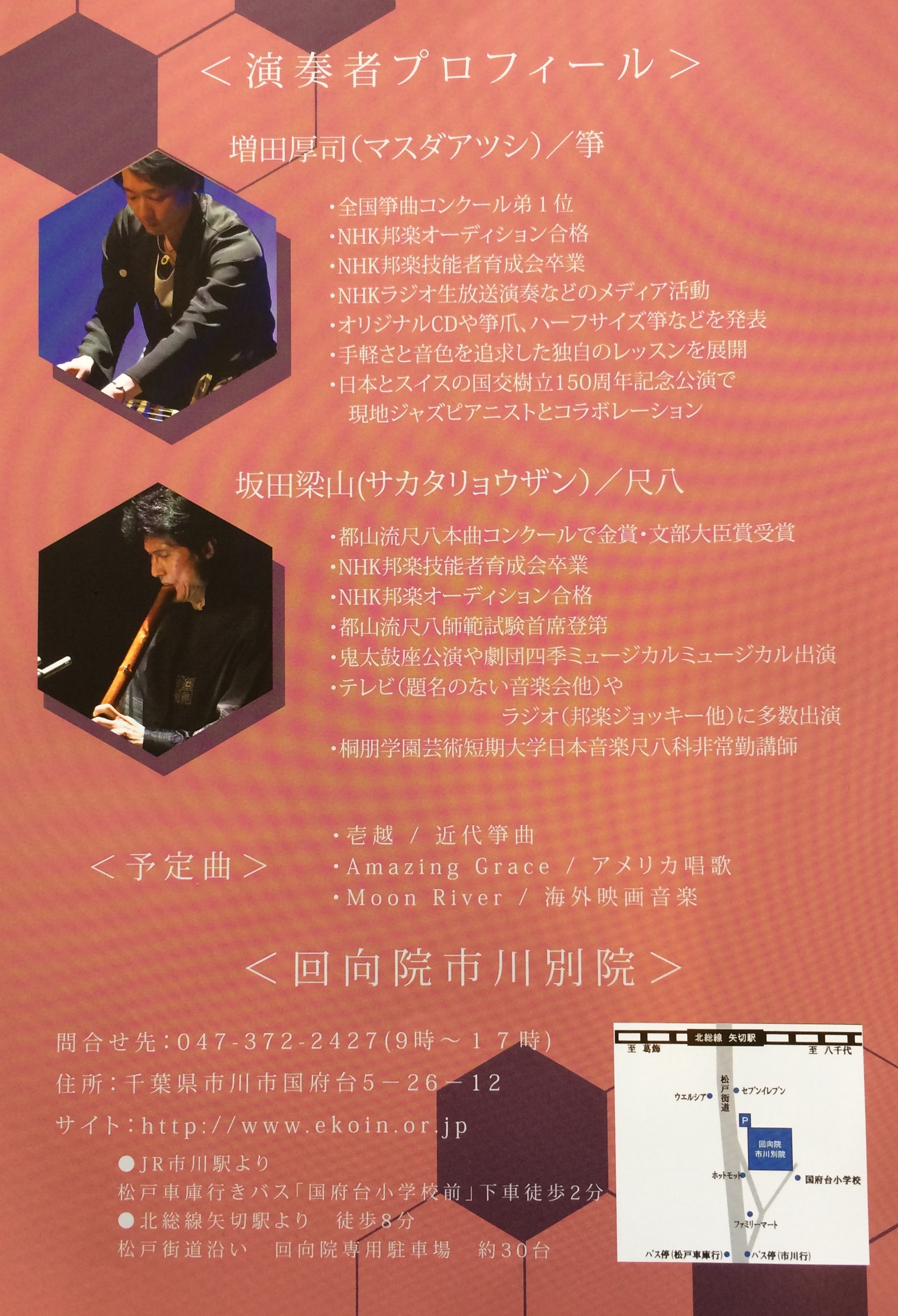 来月には箏と尺八のコンサートがあるそうです。宣伝をさせていただきました。