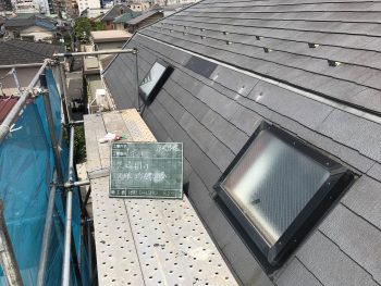 足場掛け後、屋根に上り住宅が密集して確認できなかった面の屋根状況も点検いたしましたが他に異常は見受けられず、無事修繕工事を完了いたしました。