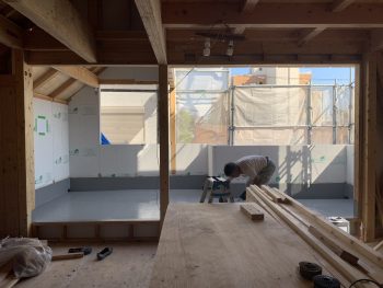6月中旬には、断熱材であるセルロースファイバーを施工予定です。