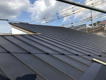 下葺きは改質アスファルトルーフィング、仕上げはガルバリウム鋼板です。