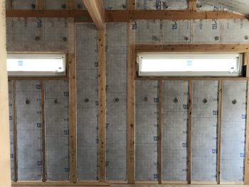 金物検査に合格すると、次は外壁面の断熱工事へと進みます。