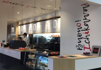 チーバくんと明るい店内。