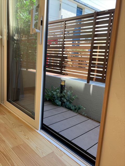 外構のフェンスは外部からの目線を極力排除しつつ、部屋が暗くならないようになっています。