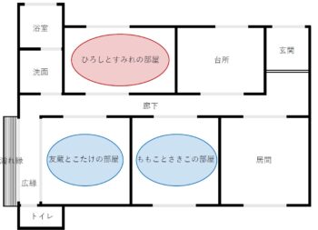 サザエさんの例と共通しているのは友蔵とこたけの部屋は日当たりがよくトイレが隣接しています。