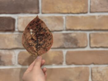 帰省の際実家に忘れた化粧ポーチを、柿の葉のメッセージと一緒に届けてくれたのでした。