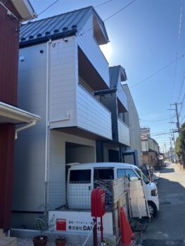 外部は足場の解体が終わりスタイリッシュ&モダンな外壁が完成しています。