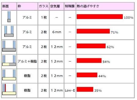 次はサッシ素材構造の違いによる価格の違いを示しています。間違えないでほしいのは、家全体の莫大な投資額に比較して、窓にかける総額は少額です。暖かく涼しい家には先ず窓を考えるは基本中の基本です!