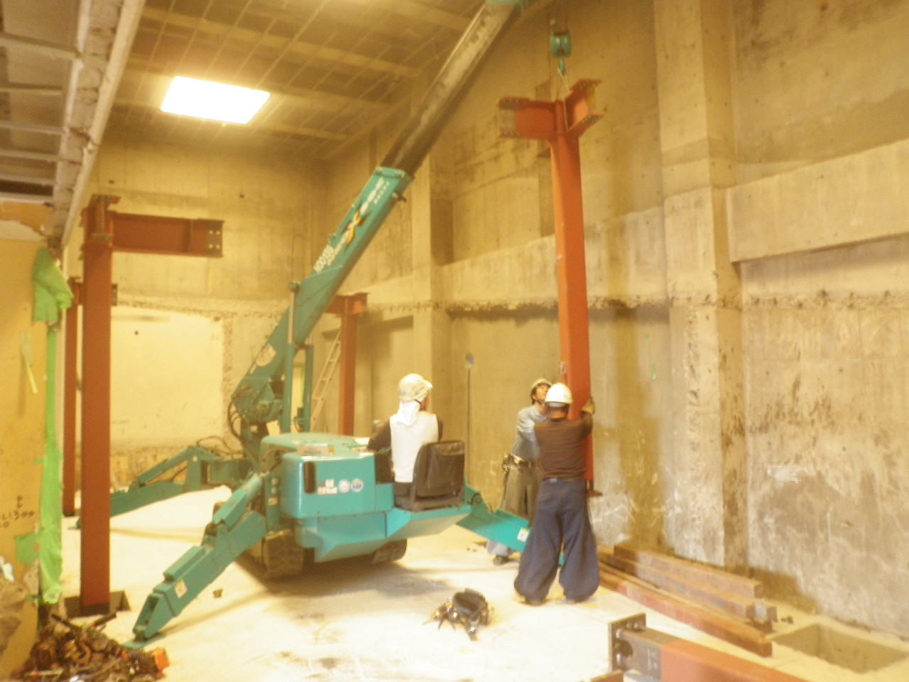 室内で工事を行っているので、一般のクレーンが使用できません。