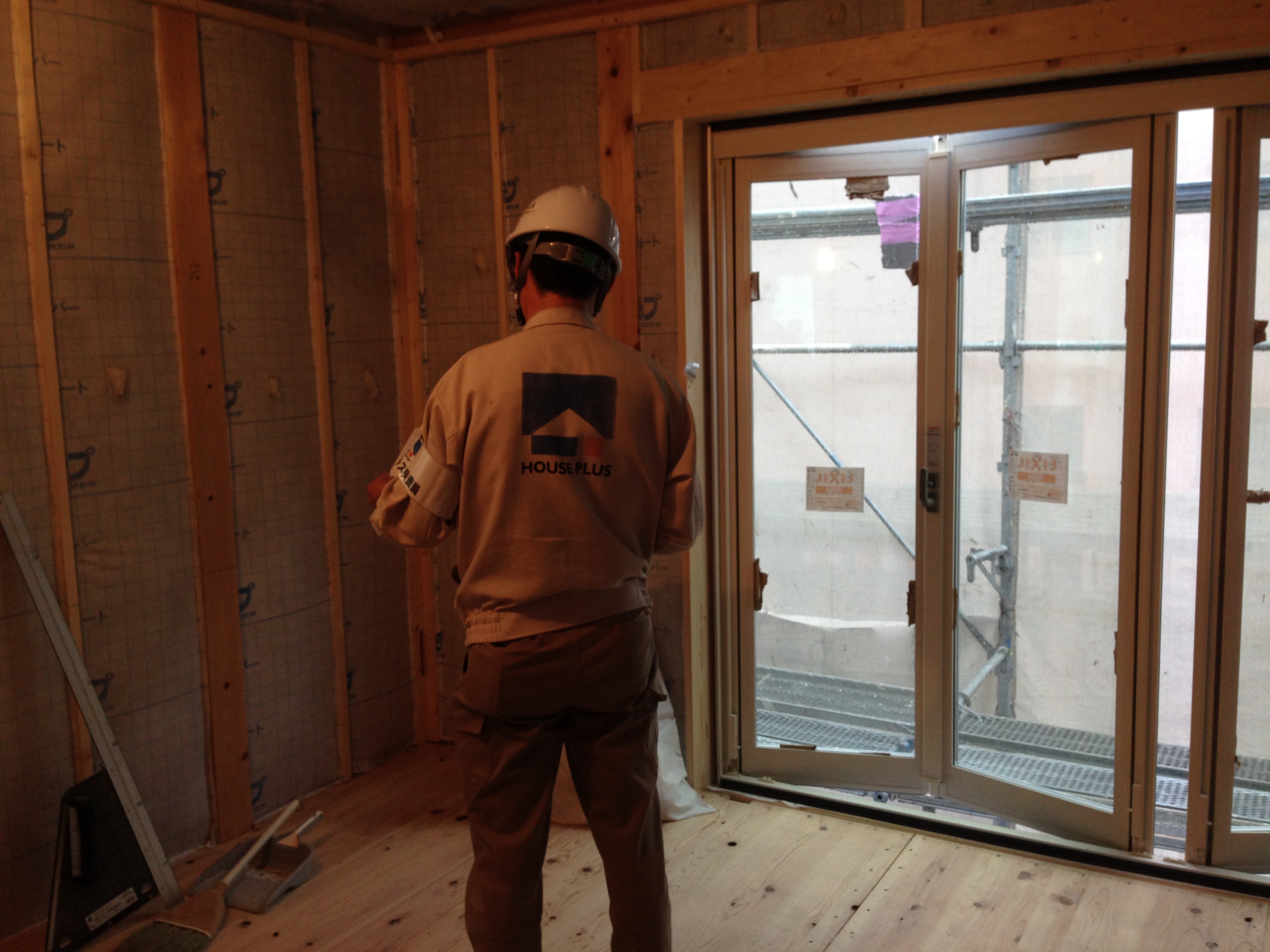 セルロースファイバーの施工状況を、第三者機関の検査員がしっかり見ています。