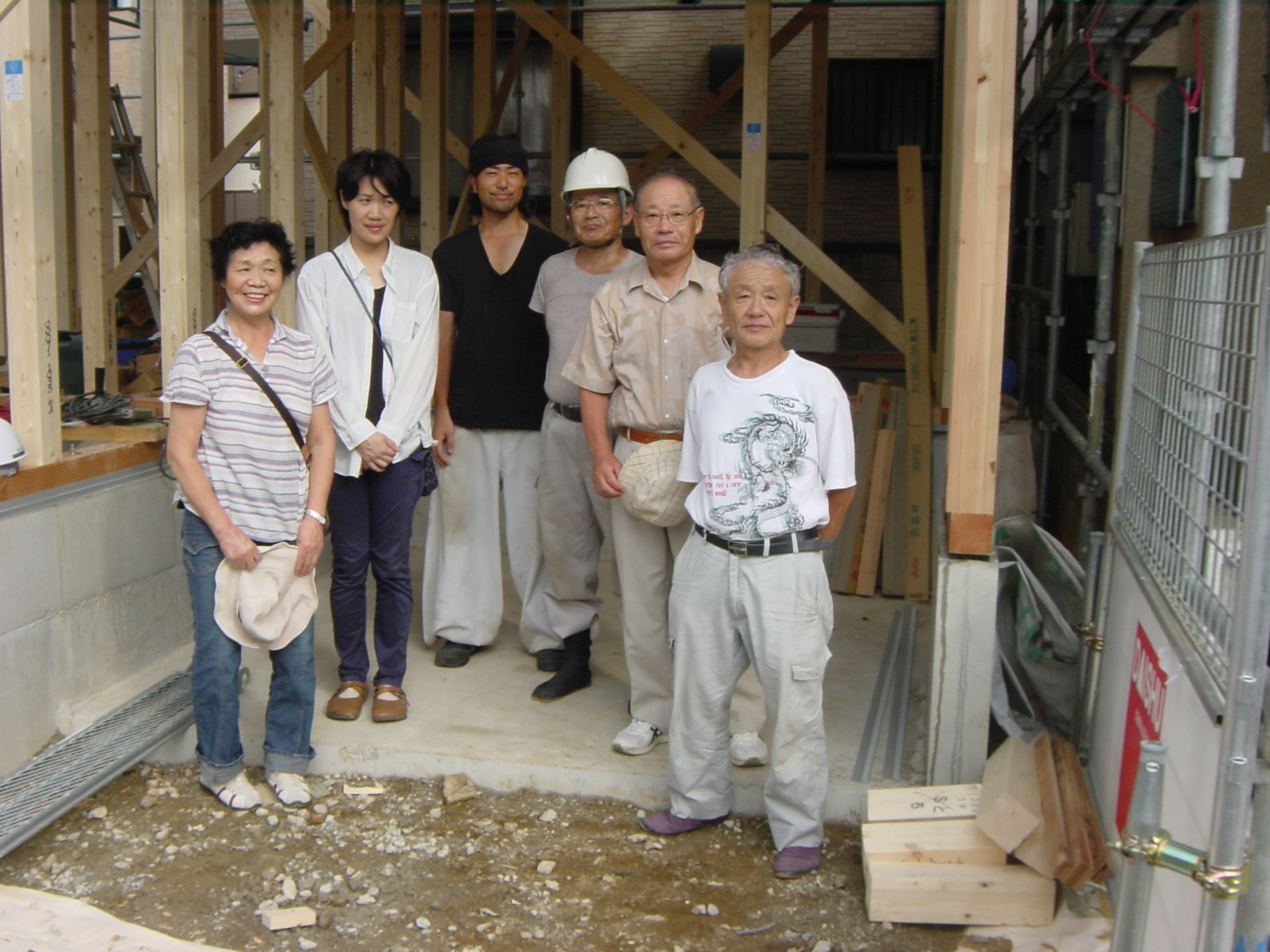 上棟が終わり、大工さんを初めO様と建物の4角にお酒・お塩・お米でお清め式の方、行いました。
