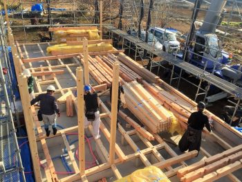 2月吉日、冬の澄み渡った空の下、S様邸が上棟いたしました。
