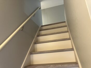 内装下地ボード、新規の固定階段取付けを無駄のない動きで進めてくれる大工さん。