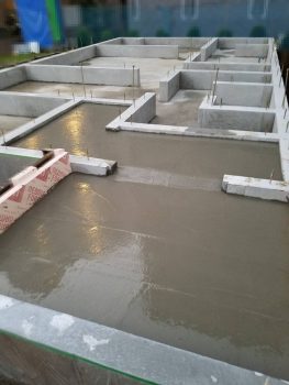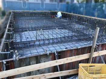検査に合格すると、基礎のコンクリートの打ち込みをします。