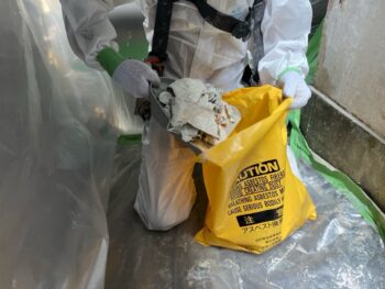 前回に続き解体工事に関する事項で本工事における石綿含有建築資材の除去作業についてお話しします。