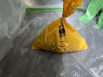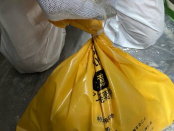 この養生材も石綿含有建材と同様に2重梱包して袋詰めに致します。