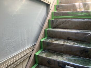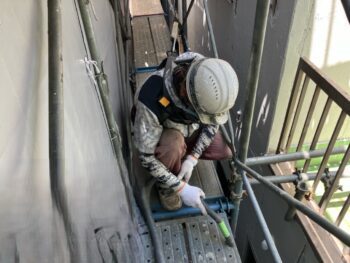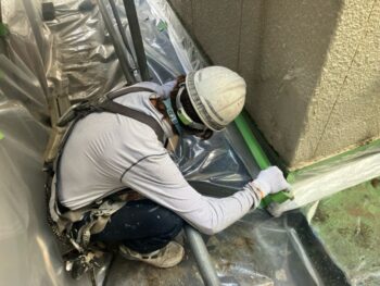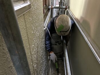見た目では塗装材が無くなったかのように見えますが、取り残しや飛散防止措置として飛散防止剤を塗布致します。
