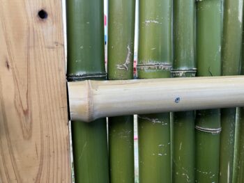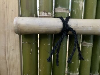 その後は縦使いで並べた格子に横桟としての竹を当てつけて固定作業をします。
