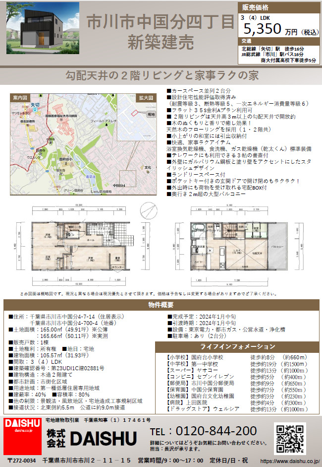又、新築物件の建売販売も行わせていただいておりまして我々、自社の現場監督で完成させた3物件のご案内ができますので、ご興味を持っていただけましたら、弊社までご連絡をお願い致します。