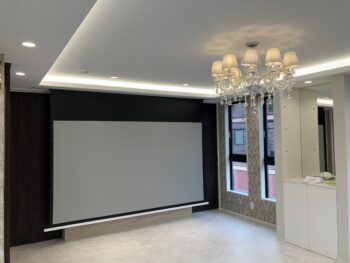電動プロジェクターは天井に埋め込めました。