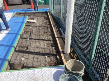 そしてコンクリートの割れ止めを考慮してワイヤーメッシュを敷き込み、コンクリート打設へと進みます。