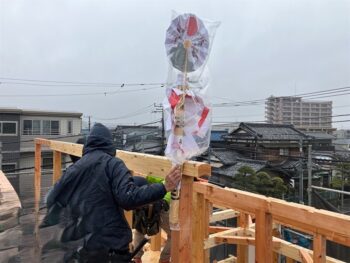 棟上げ後、無事に建物が完成することを祈願し幣串を納めます。