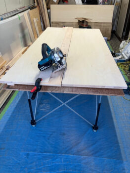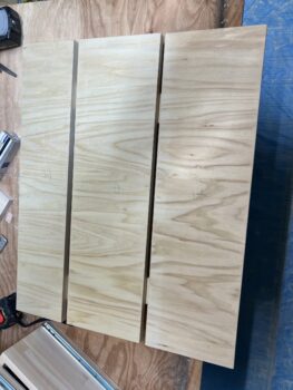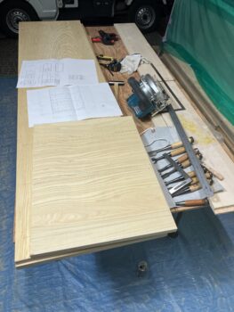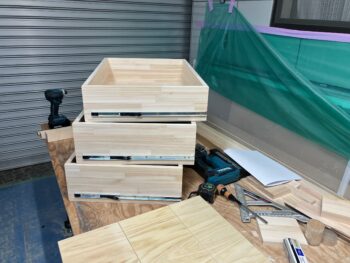 タンスに使用する資材を用意する為、資材の切断加工を終えて組立に入ります。