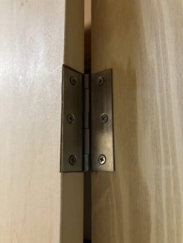 扉の開閉を行うために吊元側に金物を使うのですがスライド丁番、旗丁番と選択が必要です。