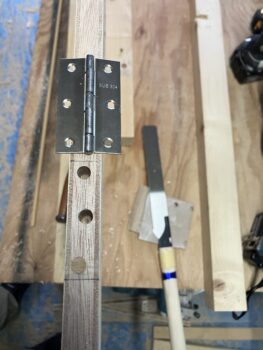 丁番を取り付ける位置を設定したら、丁番のサイズに合わせて丁番材自体の厚み分を削り取ってからビス止めします。
