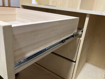 幅、高さ、奥行は勿論、扉にする?引違い戸にする?引き出しも欲しいか?使用材は何にしようか?扉ならスライド丁番か旗丁番か?引き出しにスライドレールを使う?各部材の厚さはいくつにしようか?等、選択と計画する事は結構あるものです。