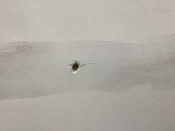 写真にある穴はRC造の壁までのモルタル塗り厚さを確認する為に開けた跡で塗り厚は10~15mm程でした。