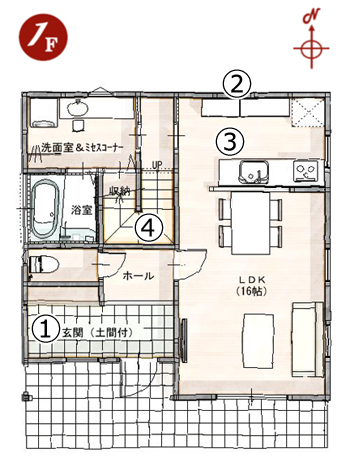 このプランは家族が出かける前、必ずリビングを通るので、自然とコミュニケーションがとれ会話がうまれます。