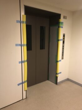 管理事務所からの工事許可ののち、室内、共用廊下、エレベーター、エントランスの養生を行い、住設機器の解体搬出工事からスタートしました。
