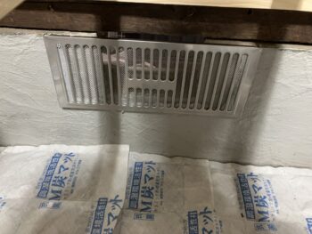 外側の換気口が外れていた箇所も見受けられたので内側へもステンレス製の換気金物取付を行いました。