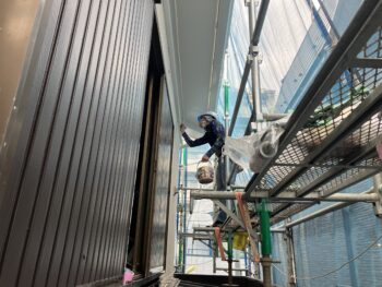 新規の樋取付けと並行し、塗装業者さんの自主チェック補修を確認しました。