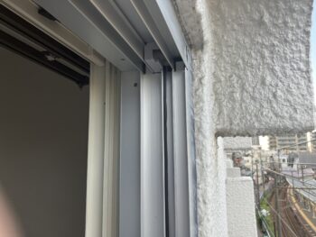 サッシの開閉を調べたところ、経年によるレール部分、戸車の摩耗やゆがみが生じていました。既存のサッシに適合する部材が見つからなかったためカバー工法によるサッシの交換を提案し採用いただきました。