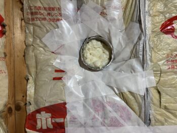 不要となったダクト貫通部は発砲ウレタン埋めを行いました。