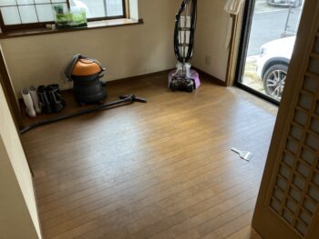 今回は先日行った床リフォーム(重ね張り)工事、施工の様子をご紹介します。