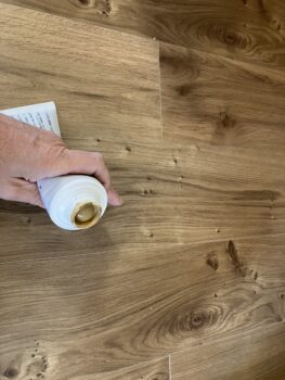 ②続いてパテ処理を行います。その後、既存のフローリングと平滑になるようヤスリで削ります。