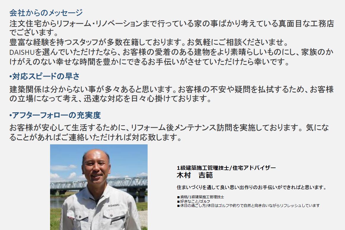 DAISHUのリフォームアドバイザーについて