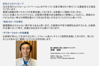お客様の想いに寄り添い、安心して任せていただけるパートナーを目指して、日々リフォームの仕事に取り組んでおります。