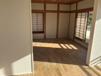 床仕上げが変わり一間続きの広々とした空間となりました。