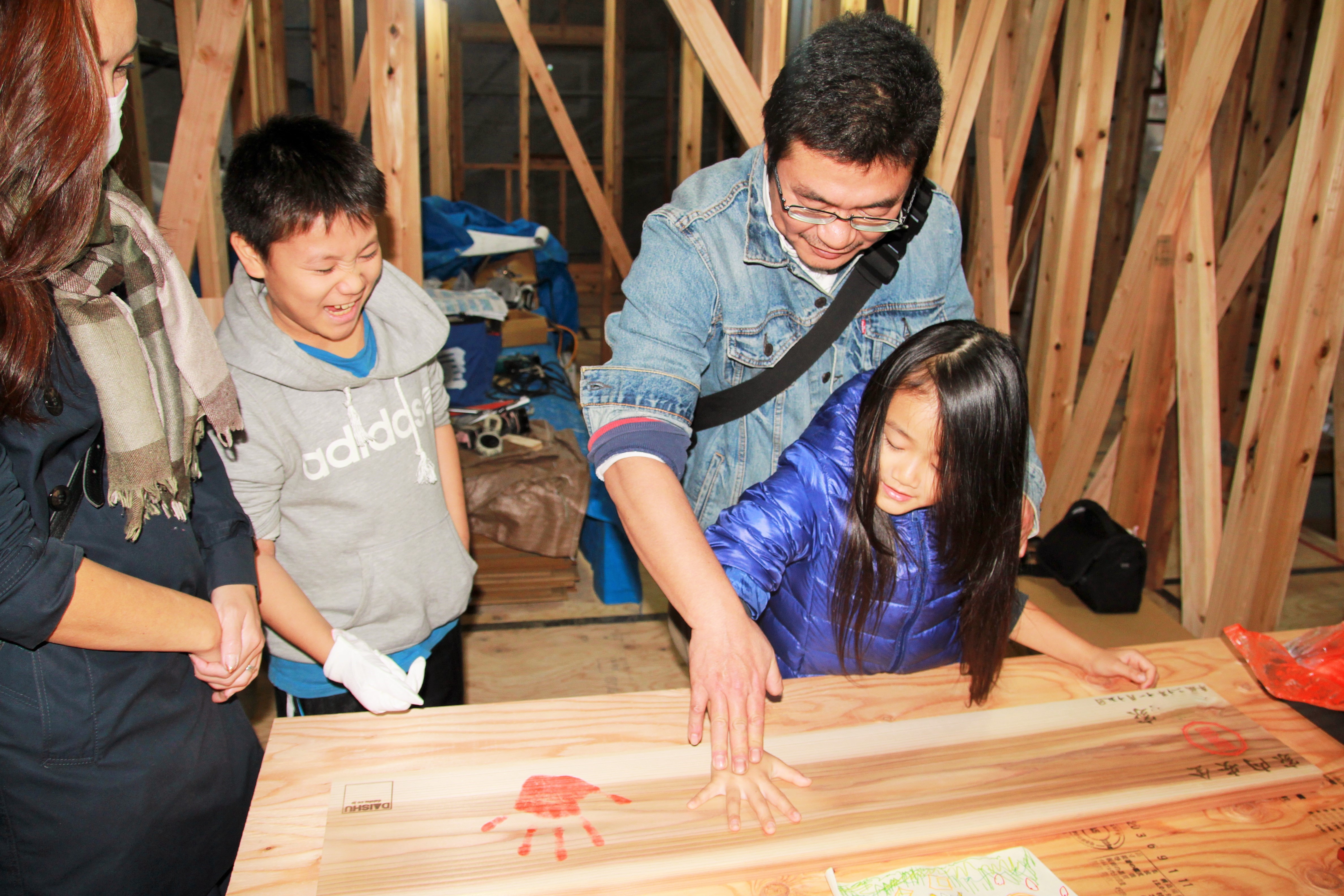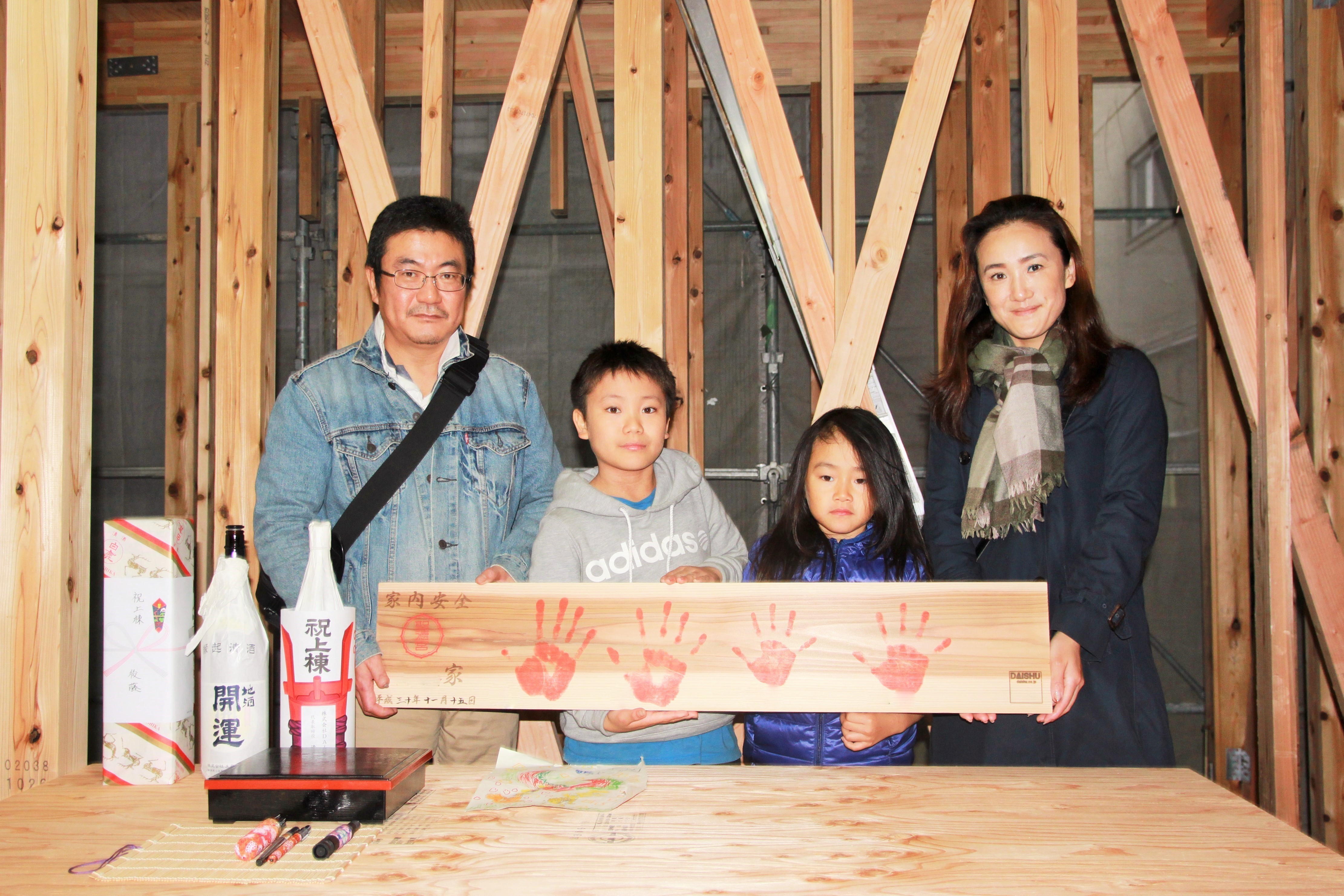 ※上棟の際、DAISHUではオリジナルセレモニー「手形式」でお祝いいたします