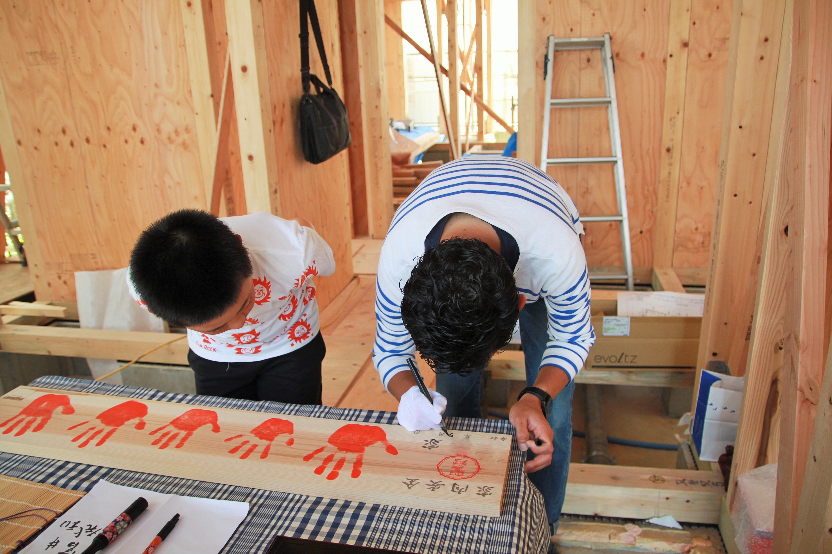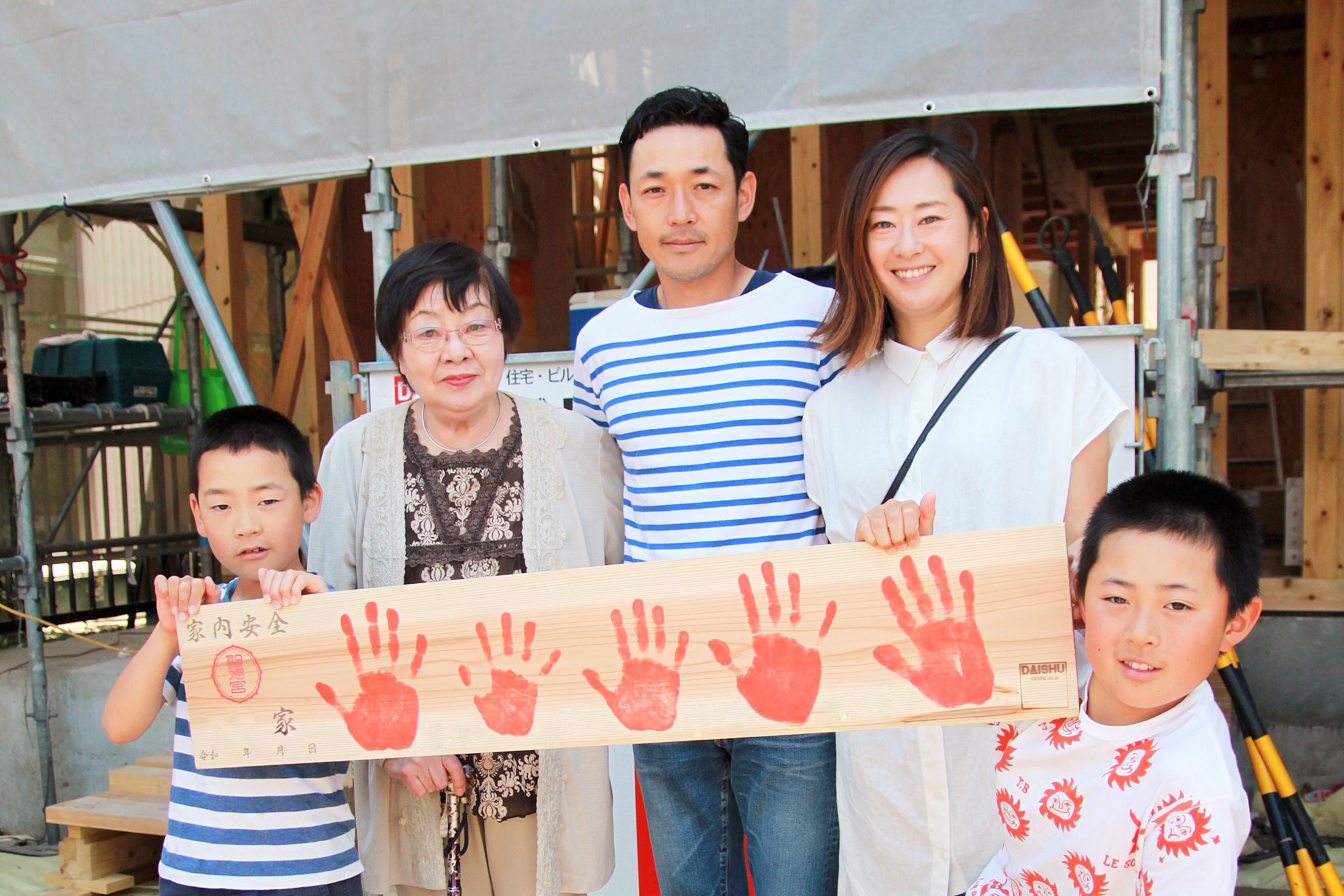 ※上棟の際、DAISHUではオリジナルセレモニー「手形式」でお祝いいたします。
