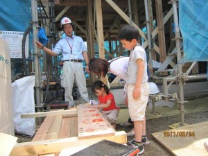 手形式というのは、上棟時にお施主様ご家族で柱や梁に